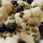 Insalate or Salads are abundant throughout Italy and can be served as an antipasto to start the meal, an accompaniment to the main course or served as a separate course after the entrée. Fresh tender vegetables like asparagus, broccoli, French beans, artichokes etc are often served cold as a salad with a dressing of seasoned oil and lemon juice. This version is with cauliflower. A typical dressing consists of 3 parts olive oil to 1 part lemon juice or wine vinegar with salt, pepper, crushed garlic, chopped herbs and sometimes mashed anchovy fillets. The recipe below has a reduced quantity of oil but if a lower calorie content is not essential, the olive oil can be increased.