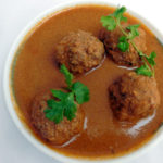 Lamb (meatball) Kofta Curry is spicy meatballs in a creamy coconut curry. It can be as spicy or mild as per your taste. The gravy is made with a poppy seeds and coconutĀ  in south India and as an onion curry in the north. Since we are a Bangalore based family, my version is with coconut. The lamb meatballs will be the same for both curry versions. My sister in law Swayampradha taught me how to make these delicious foolproof koftas which remain soft but do not disintegrate in the curry.
