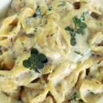 This is a lighter version of the pasta with alfredo sauce which is made of cream and cheese. The roux for white sauce is also traditionally made with oil/butter and refined flour (maida) but I use corn flour and no oil at all. This tastes as good as the rich cheese sauce but has a much lower calorie content. The herbs are a mixture of dried and fresh. I have used dried rosemary and fresh oregano but you can use any herbs of your choice.