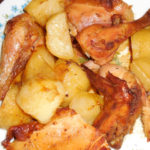 9. Cut the chicken into about 10 large pieces and place in a platter with the roast potatoes.